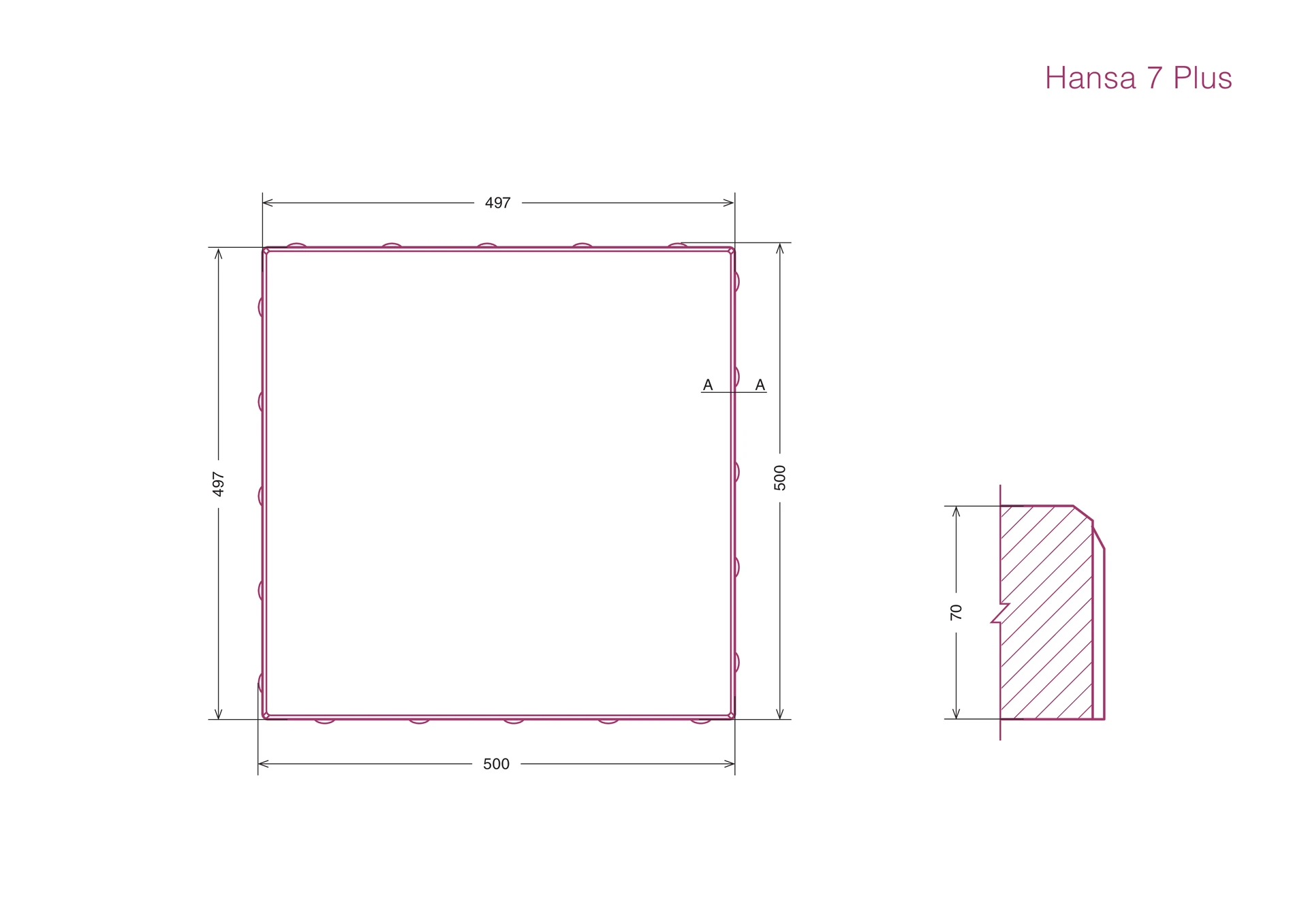 Hansa 7 Plus - 500x500 mm matmens gaminys. Įrengiant, raginame nepamiršti ilgalaikio siūlių užpildo, bei nuolatinės priežiūros. Prižiūrima ir valoma danga bus ne tik estetiška, bet ir saugi eksploatuoti.