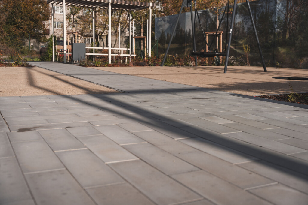 Plaza 6×2 (pilka): naudojama linijoms, akcentams ir atskiriems funkciniams plotams kurti, suteikiant lauko erdvėms papildomo dinamiškumo.