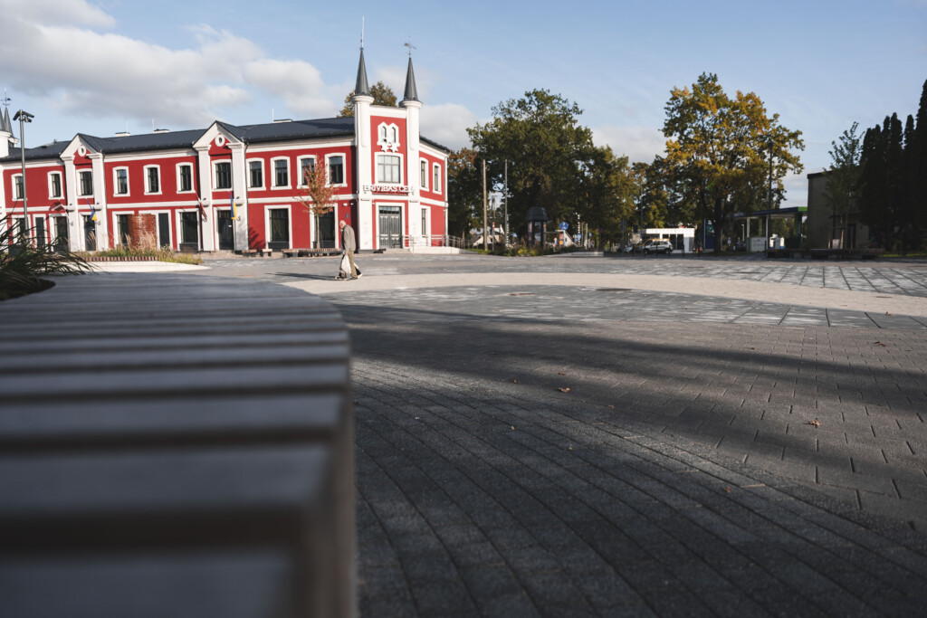 • Funkcionalumas: sukurta moderni lauko erdvė su skaitmeniniu fontanu, gėlių klombomis ir saugia bei malonia aplinka pėstiesiems.