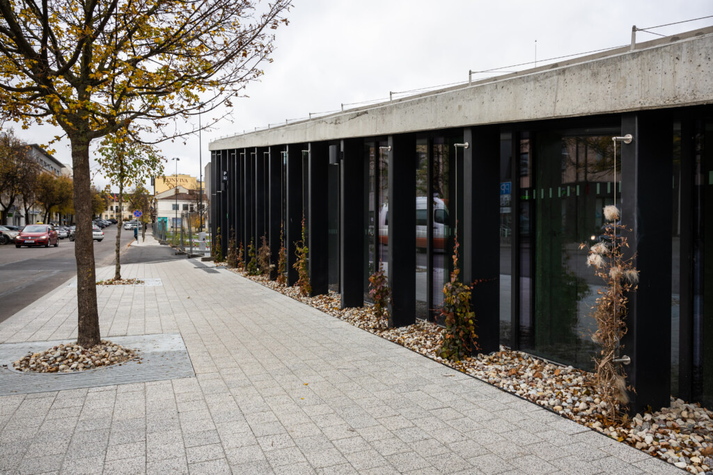 Kuriant Panevėžio autobusų stoties aplinką išlaikytas tęstinumas, renkantis natūralaus akmens tekstūros faktūros gaminius – šia faktūra dengti gaminiai puošia daugybę Panevėžio viešųjų zonų – Laisvės aikštę, Miltinio dramos teatro, Senvagės prieigas, Bendruomenių rūmus ir pan.