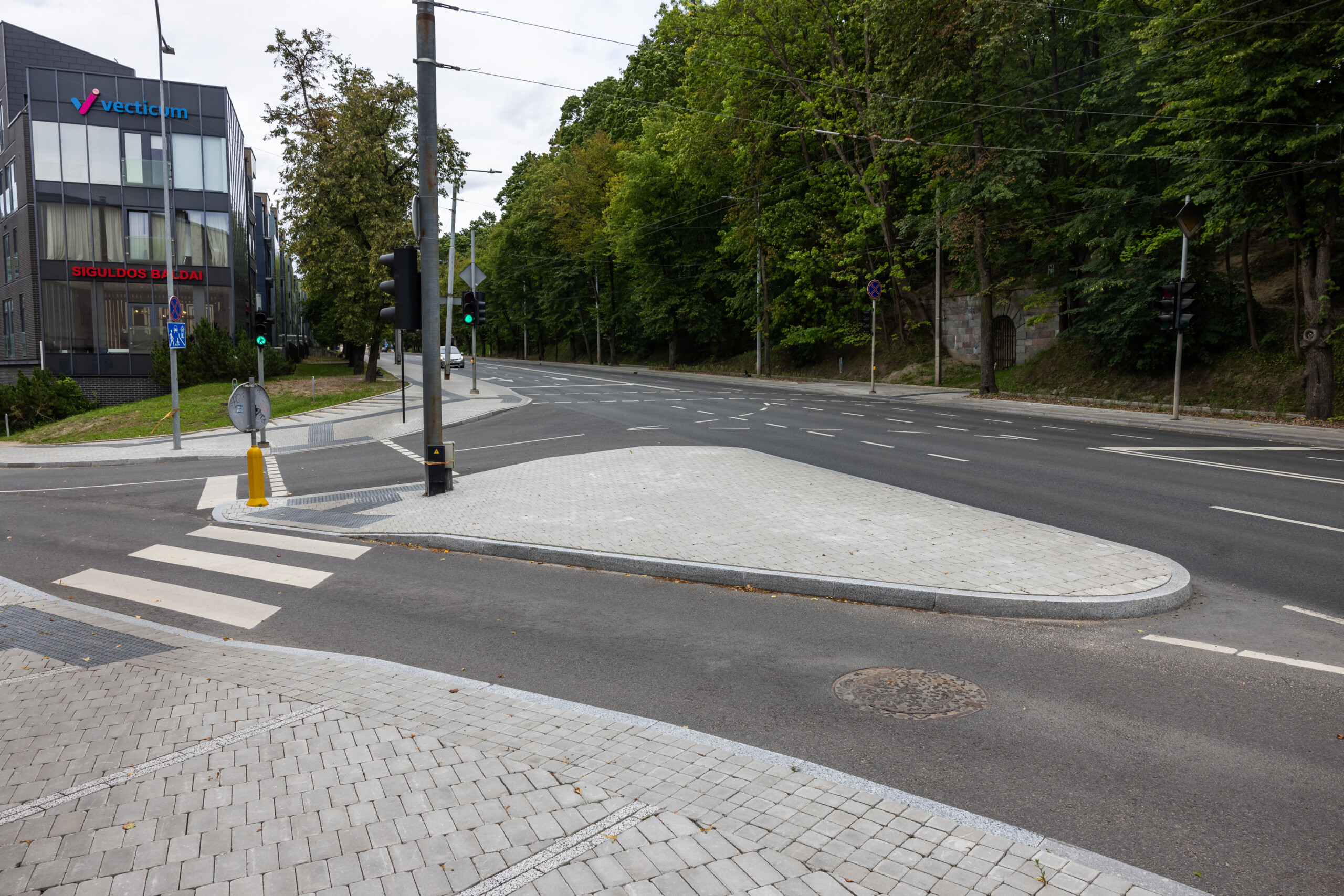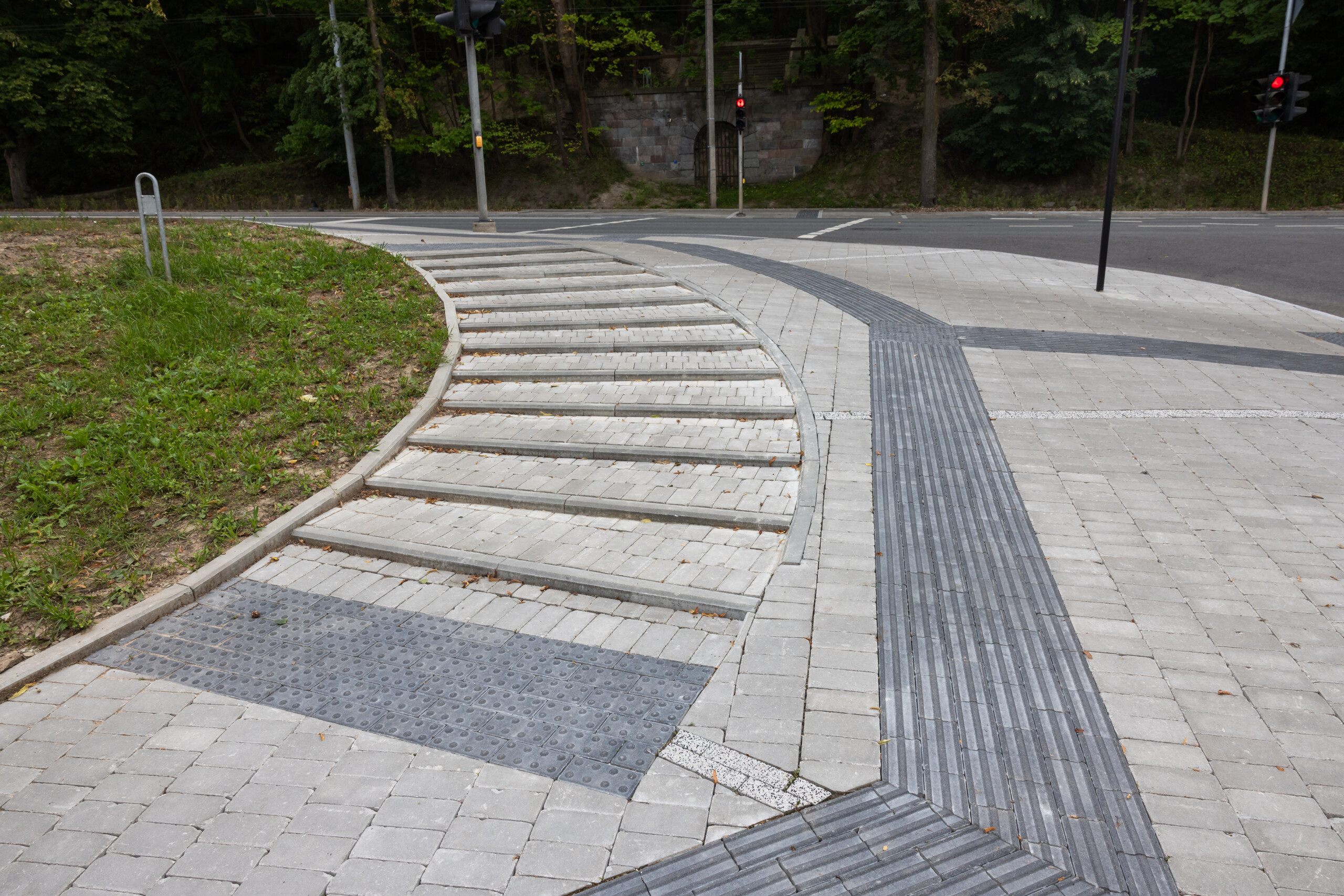 Projekte taip pat panaudoti jau įprasti Vilniaus šaligatviams vejos bordiūrai, taktiliniai produktai.